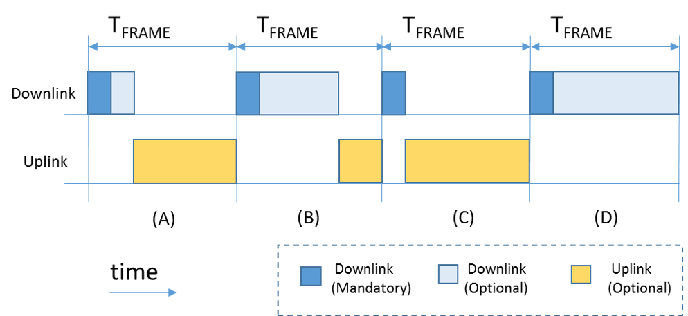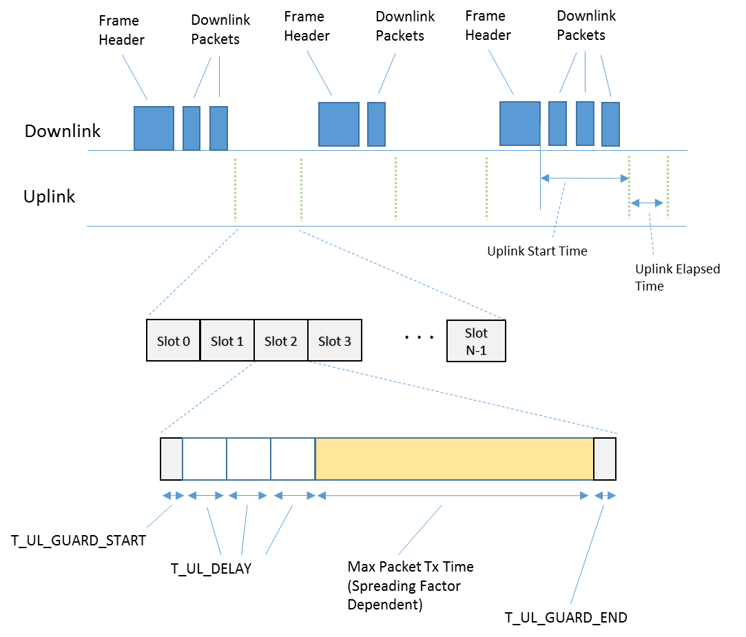 When a LoRaWAN gateway transmits, nodes in that network do not know that it is essentially unavailable. In Symphony Link we added a variable uplink/downlink boundary so that nodes know when the gateway is available and when it is not.