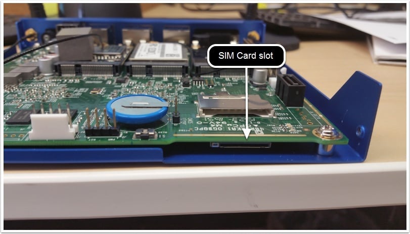 Install the SIM card on the underside of the motherboard with the pins facing toward the PCB.