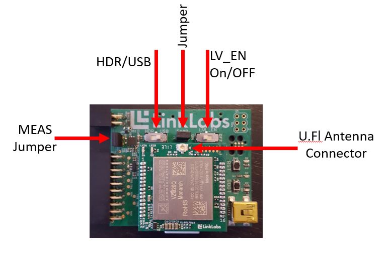 Note: MEAS jumper can be used to measure current consumption of the LL-LTE-M-VZN-SE module. To measure current, remove jumper and install measuring device inline.