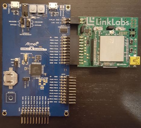 First, connect the LL Extension board to the Atmel Xplained pro board in the position shown above.