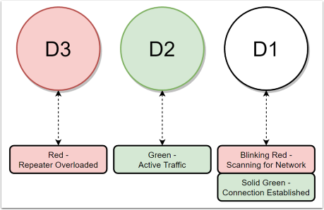 - Wait for the Repeater's D1 LED to turn solid green. This indicates it is connected to the network.