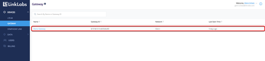 Click on the name of the gateway you want to use with the network tester from the Gateways section of your Conductor account.