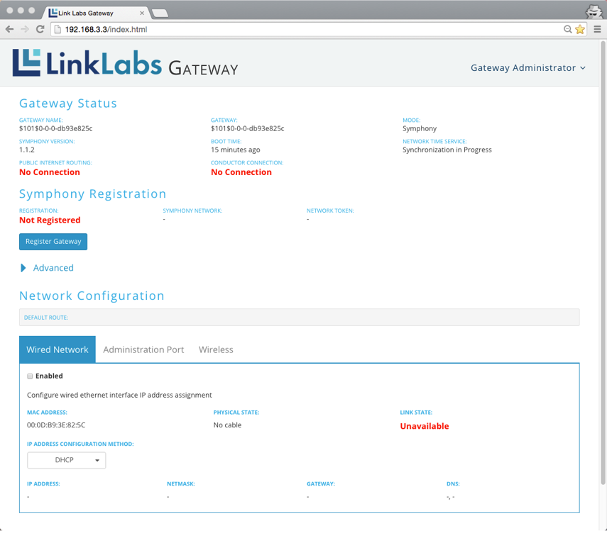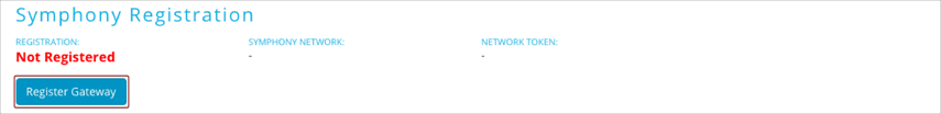 Once the gateway is connected to the Internet, click the Register Gateway button in the Symphony Registration section of the local webpage.