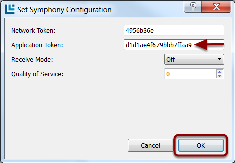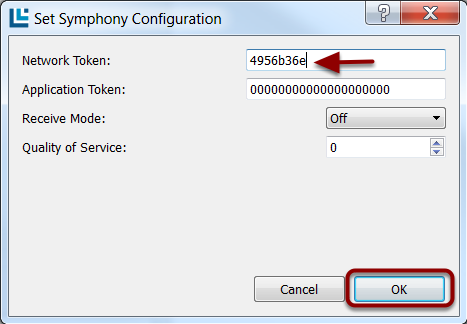 In the Application Token editbox, enter the Application Token of the "eval board demo" application. Click OK.
