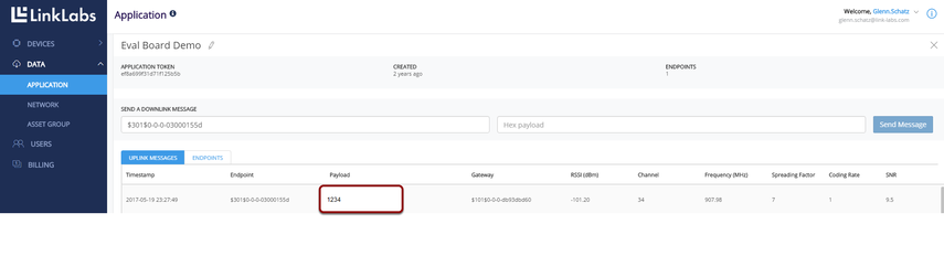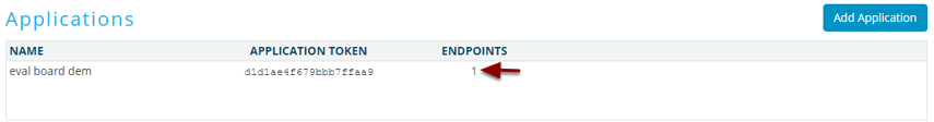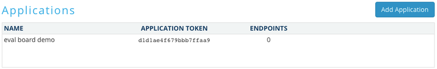 Record the Application Token of the "eval board demo" application -- we'll use it later. In this example, the Application Token is