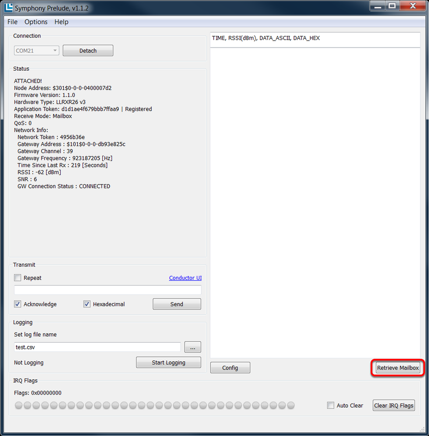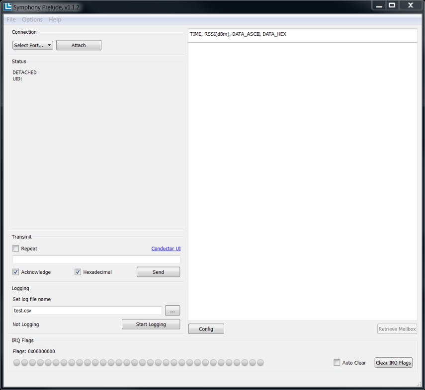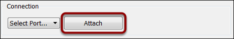From the Select Port dropdown of Prelude's Connection group box, select the COM port associated with the evaluation board. Click Attach.