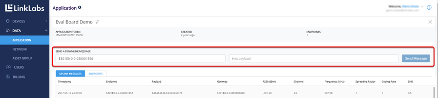 In your Conductor account, find the Downlink section of the "eval board demo" Application.
