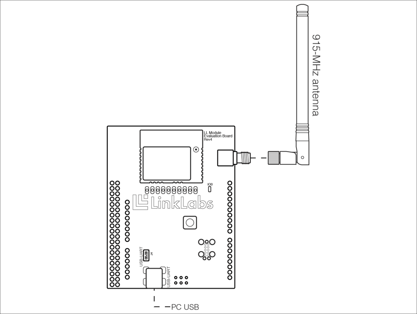 Once connected, a red LED on the evaluation board lights up. This LED lights up anytime the Symphony Link Module has set one or more interrupt request flags. (In this case, the LED indicates a RESET event has occurred because you just supplied power to the board.)