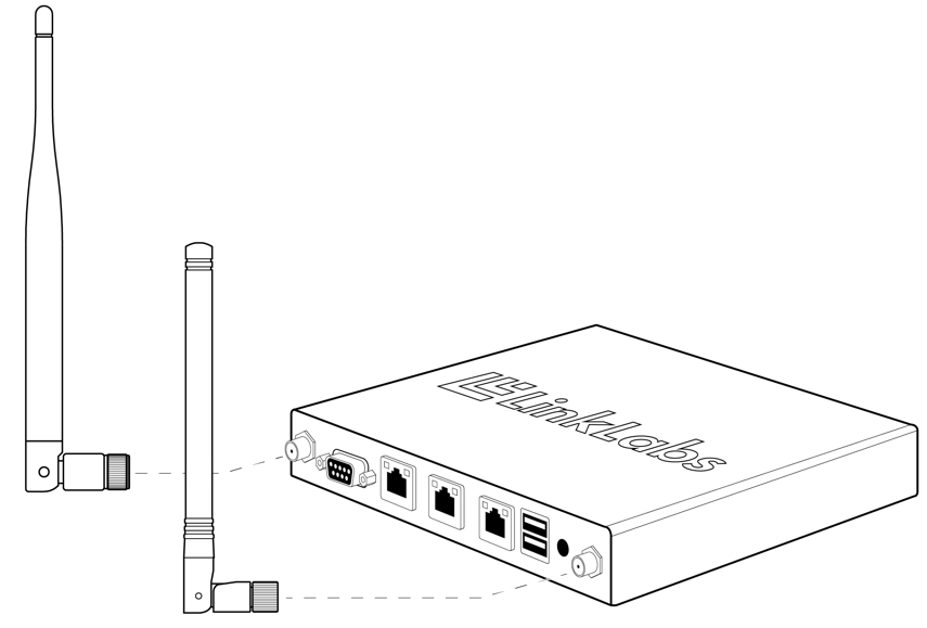 Connect the 915-MHz antenna to the gateway's UHF antenna jack and the Wifi antenna to the Wifi jack.