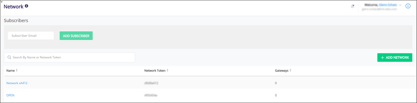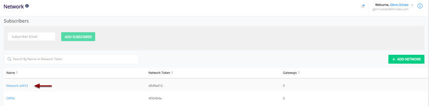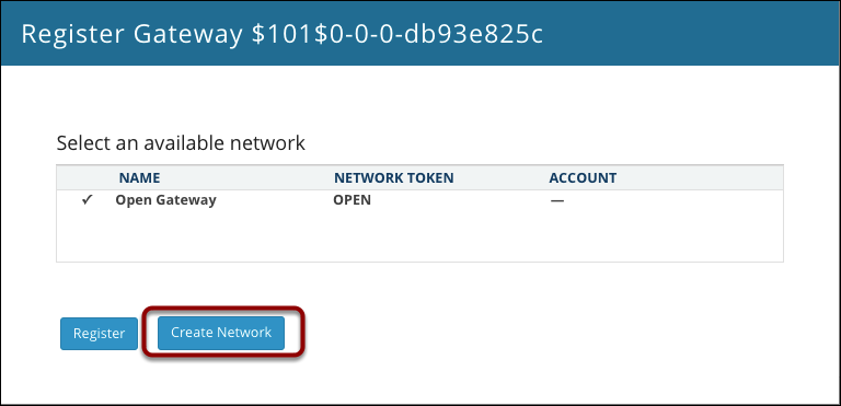 In this example, we're going to register the gateway with a new Symphony Link Network. (But if you want, you can simply register the gateway with the Open Gateway network.) Click the Create Network button.