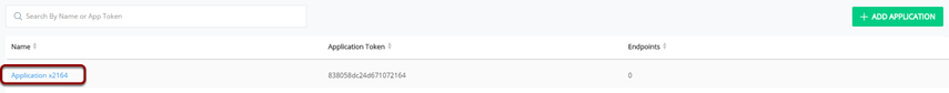 Conductor generates a new, unique Application Token and adds it to the list. In this example, the new application is called Application x2164.