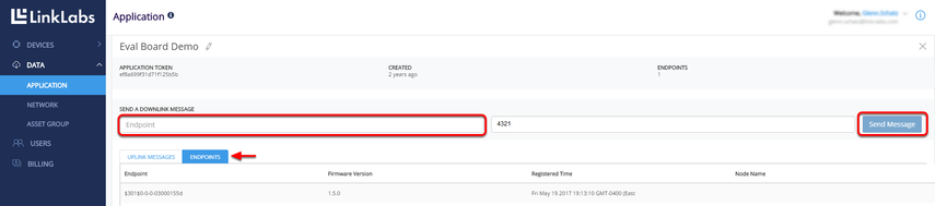 In your Conductor account, the "eval board demo" application now shows that it includes one ENDPOINT (meaning one Symphony Link Module).