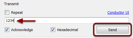 In Prelude's Transmit groupbox, enter a hex-string message, like "1234". Click Send.